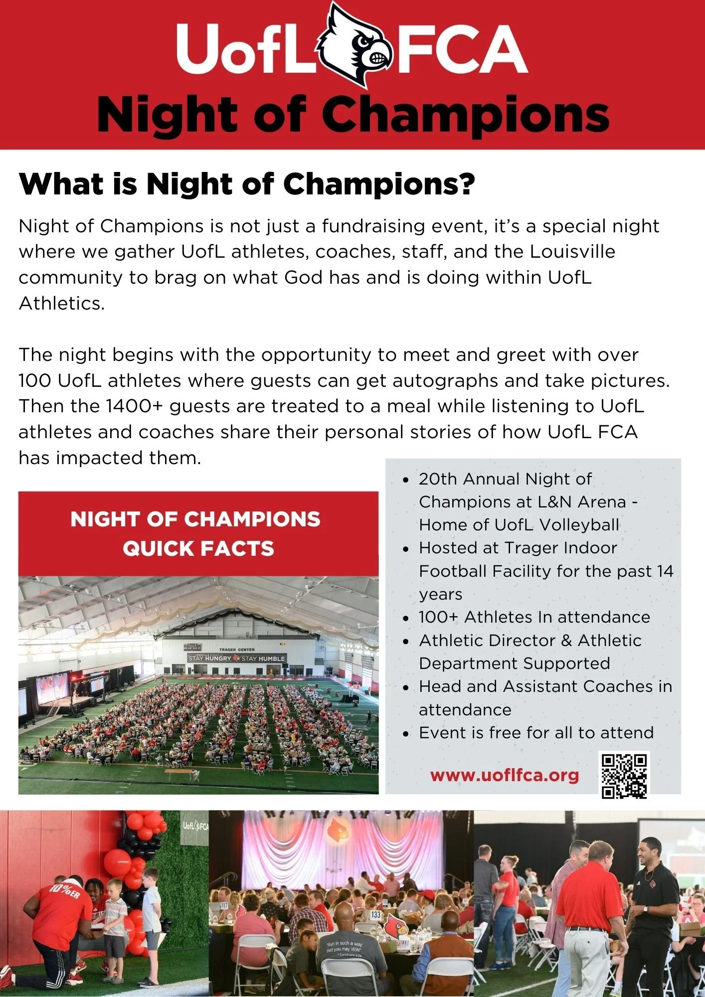 If you or your company would like to be a corporate sponsor for Night of Champions, please connect with Chris Morgan at CMorgan@fca.org for more information on this.